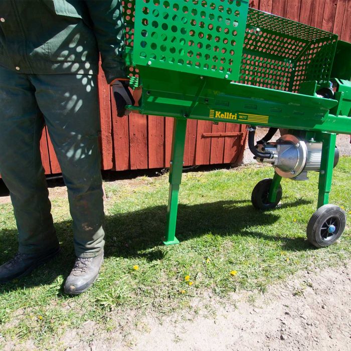 Der elektrohydraulische Holzspalter von Kellfri ist großzügig dimensioniert und bietet eine Spaltkraft von 7 Tonnen. Auf bis zu 70 cm stufenlos einstellbare Scheitlänge für eine höhere Spaltfrequenz bei kürzeren Scheiten. Der Holzspalter ist mit einem Schutzkäfig ausgestattet.