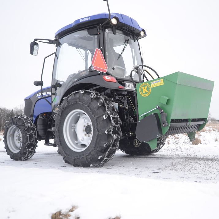 Der traktormontierte Streuwagen von Kellfri lässt sich vielseitig einsetzen. Der Streuwagen kann ebenso mit verschiedenen Materialien zur Bekämpfung von Glätte wie zum Verteilen von Sägemehl und Hackschnitzeln auf Lauf- und Fahrwegen usw. oder zur Grünflächenbearbeitung verwendet werden.